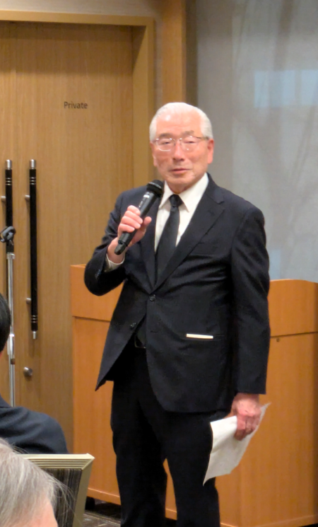 続いて昨年9月に三崎稲荷神社宮司に昇進された山崎充彦氏からご祝辞をいただきました。また、前町会長の幅和弘氏より挨拶と乾杯の発声をいただきました。