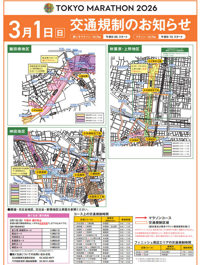 3月1日(日)東京マラソンが開催されます!神保町地区で実施される交通規制の詳細はホームページをご覧ください。(https://www.marathon.tokyo/about/traffic/)